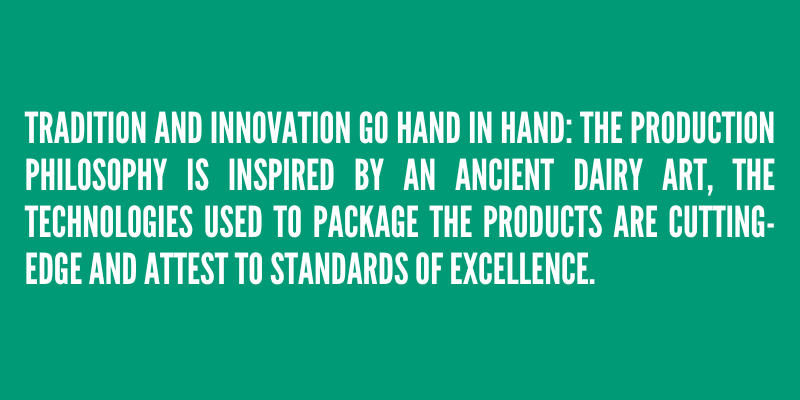 Tradition and innovation go hand in hand: the production philosophy is inspired by an ancient dairy art, the technologies used to package the products are cutting-edge and attest to standards of excellence.